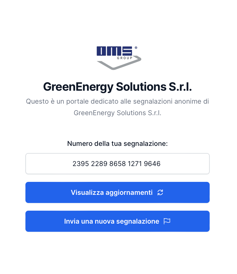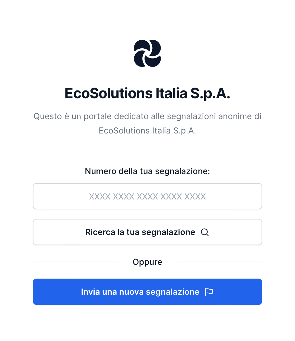 Après l'envoi d'un signalement, l'utilisateur reçoit un code unique de 20 caractères (qui n'est pas visible pour vous). Avec ce code, il pourra accéder à son signalement, fournir des informations supplémentaires et communiquer avec vous de manière sécurisée.